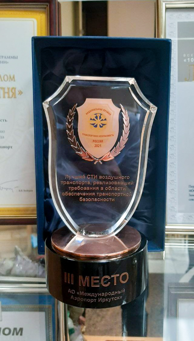 «Международный аэропорт Иркутск» занял 3 место в Национальной Премии «Транспортная безопасность России-2021» в номинации «Лучший субъект транспортной инфраструктуры воздушного транспорта, реализовавший требования в области обеспечения транспортной безопасности».