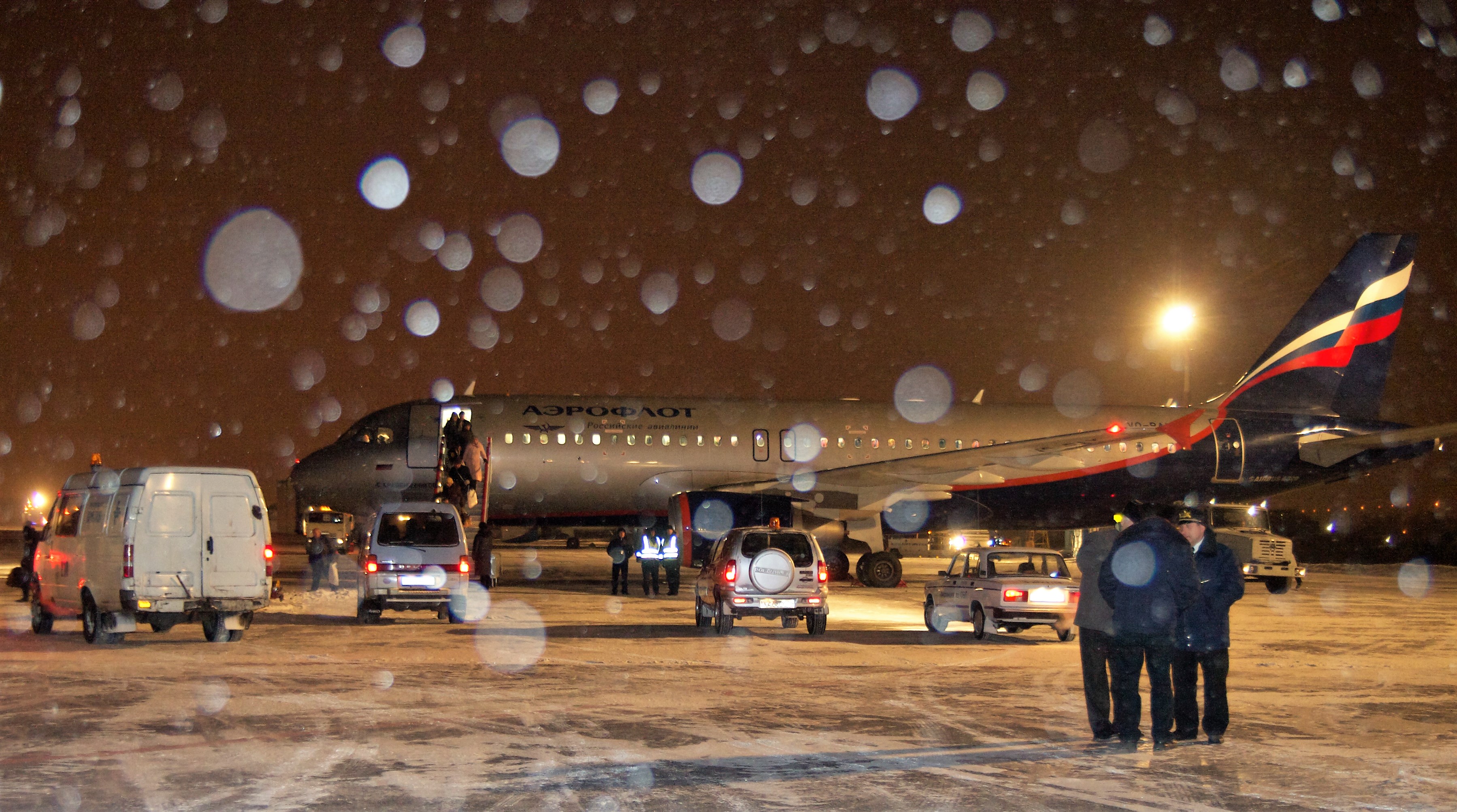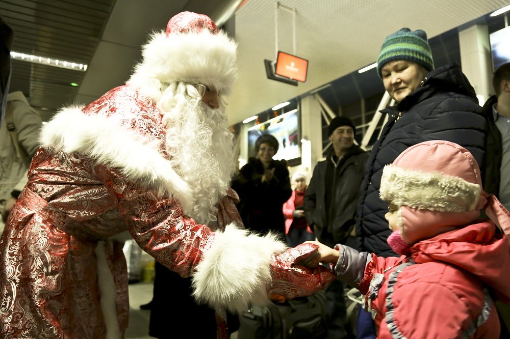 День в терминале внутренних воздушных линий начался с визита Деда Мороза.