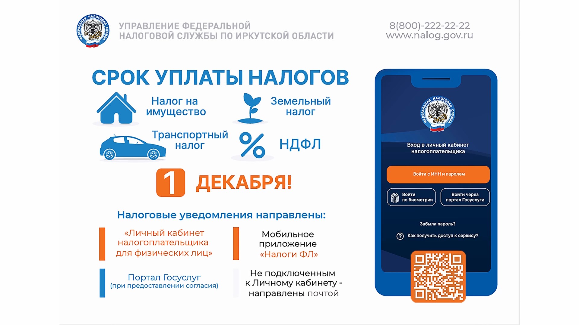 Напоминаем, срок уплаты налогов истекает 1 декабря!