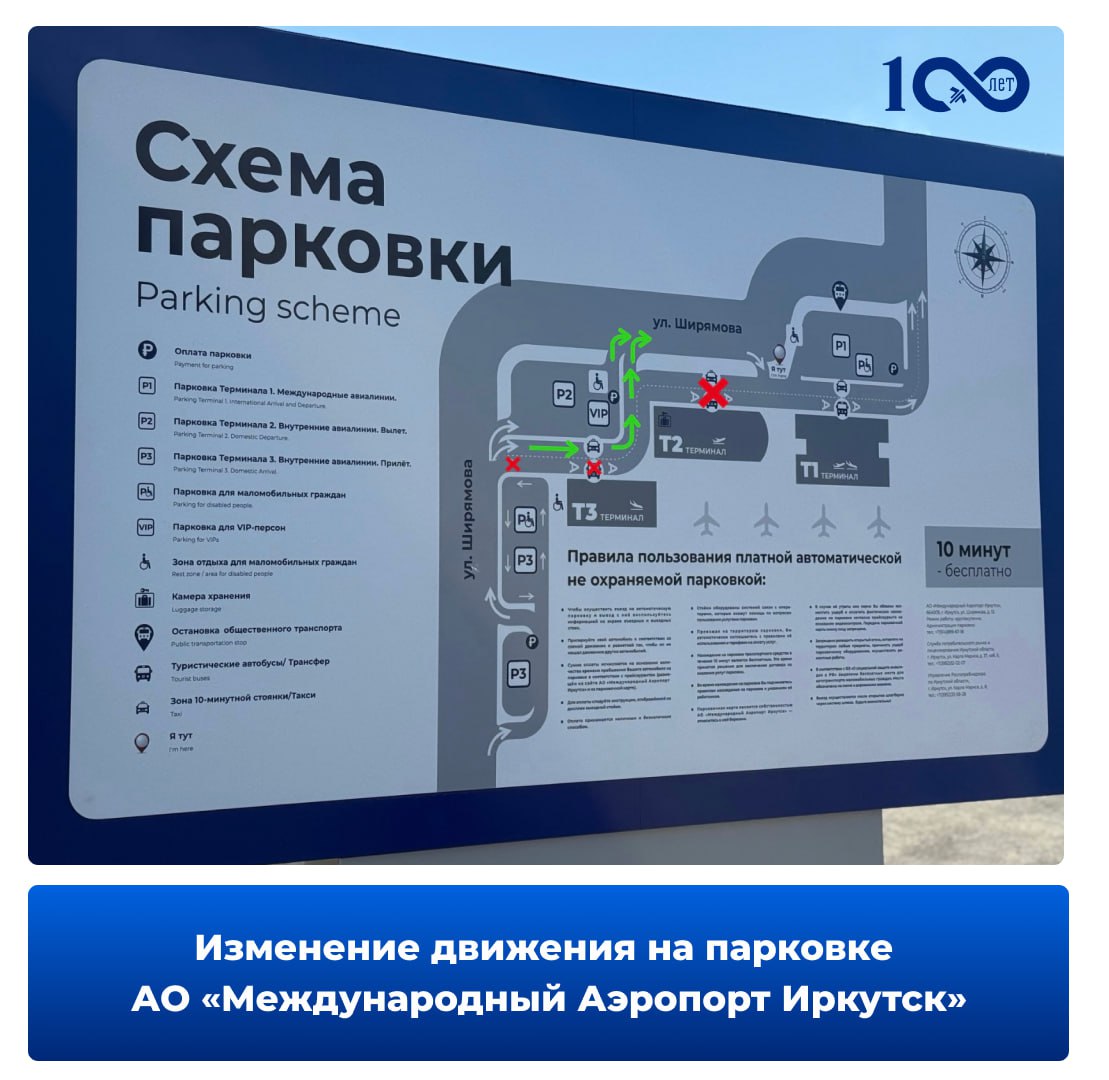 Обращаем ваше внимание на изменение движения на парковке АО «Международный Аэропорт Иркутск» в связи с проведением реконструкции парковочного комплекса.